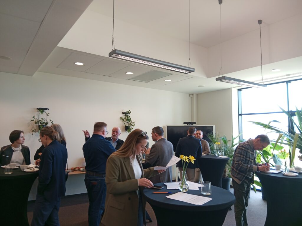 Zwieńczeniem spotkania była wizyta w budynku o wysokiej certyfikacji energetycznej — obiekcie wyposażonym w ścianę fotowoltaiczną, czujniki monitorujące warunki atmosferyczne oraz hybrydowy system oparty na pompach ciepła i zaawansowanej automatyce budynkowej. Uczestnicy mogli zobaczyć, jak w praktyce funkcjonują nowoczesne rozwiązania obniżające zużycie energii i koszty jej generacji. Spotkanie przebiegało w atmosferze aktywnej wymiany opinii i doświadczeń.